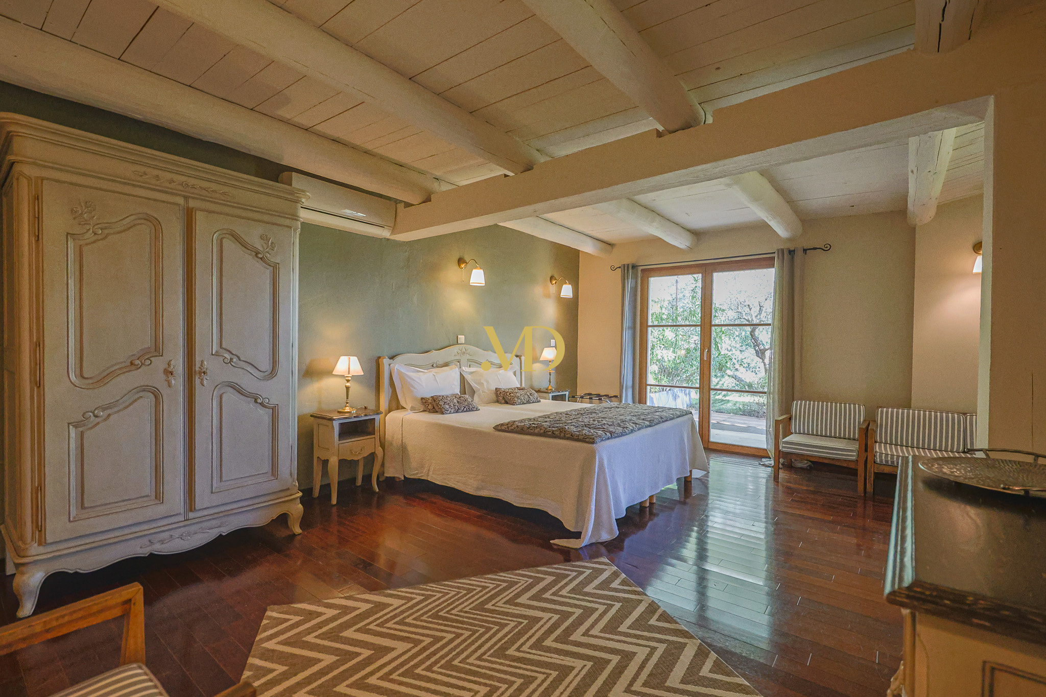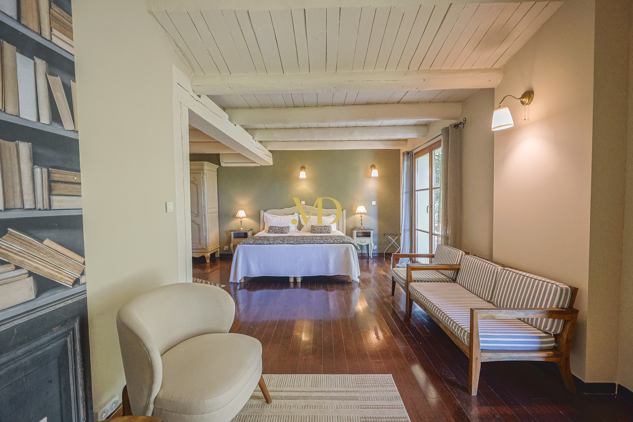 À l’étage, accessible par une entrée indépendante, un appartement d’environ 90 m² propose une cuisine équipée, un salon-salle à manger et une chambre avec salle d’eau. Un espace idéal pour recevoir famille et amis en toute intimité, ou pour générer un revenu locatif saisonnier. Une septième chambre avec salle d’eau, située près de la piscine, complète l’ensemble et offre un accueil indépendant très apprécié.