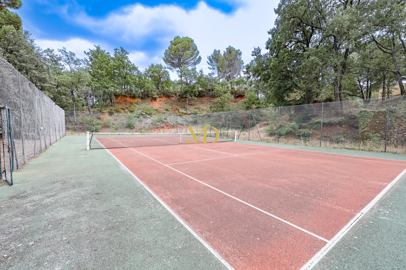 Vous bénéficiez d'un accès à la piscine et au terrain de tennis réservés exclusivement aux résidents, accessibles par un charmant sentier dans les ocres.