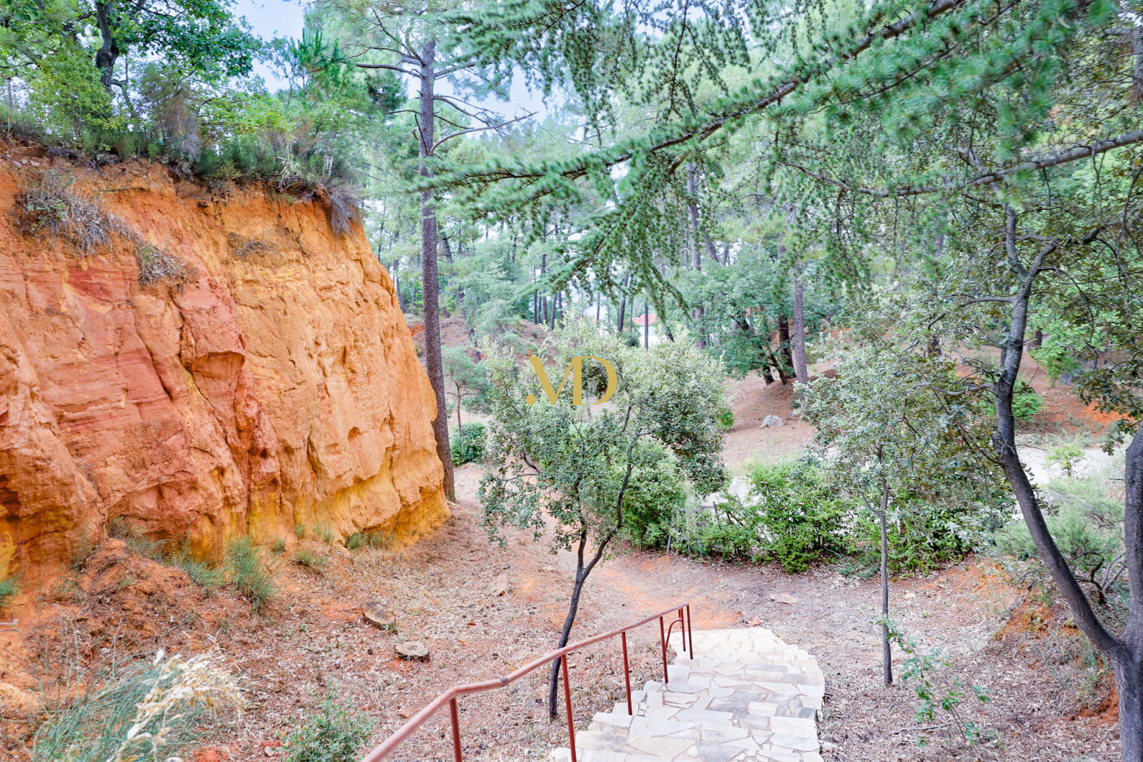 MAISON DUMON vous propose cette jolie villa dans les ocres de Roussillon de 124 m², située dans un cadre enchanteur, vous pourrez rejoindre le charmant village de Roussillon en une dizaine de minutes à pied, en empruntant un sentier pittoresque à travers les pins et les ocres.La villa se trouve dans un domaine clôturé avec portail sécurisé et digicode. D'une surface habitable de 124 m² elle positionnée sur un terrain arboré de 760 m2, elle dispose d'une grande terrasse avec pergola, un espace extérieur idyllique au-dessus des ocres, parfait pour vos repas en plein air.