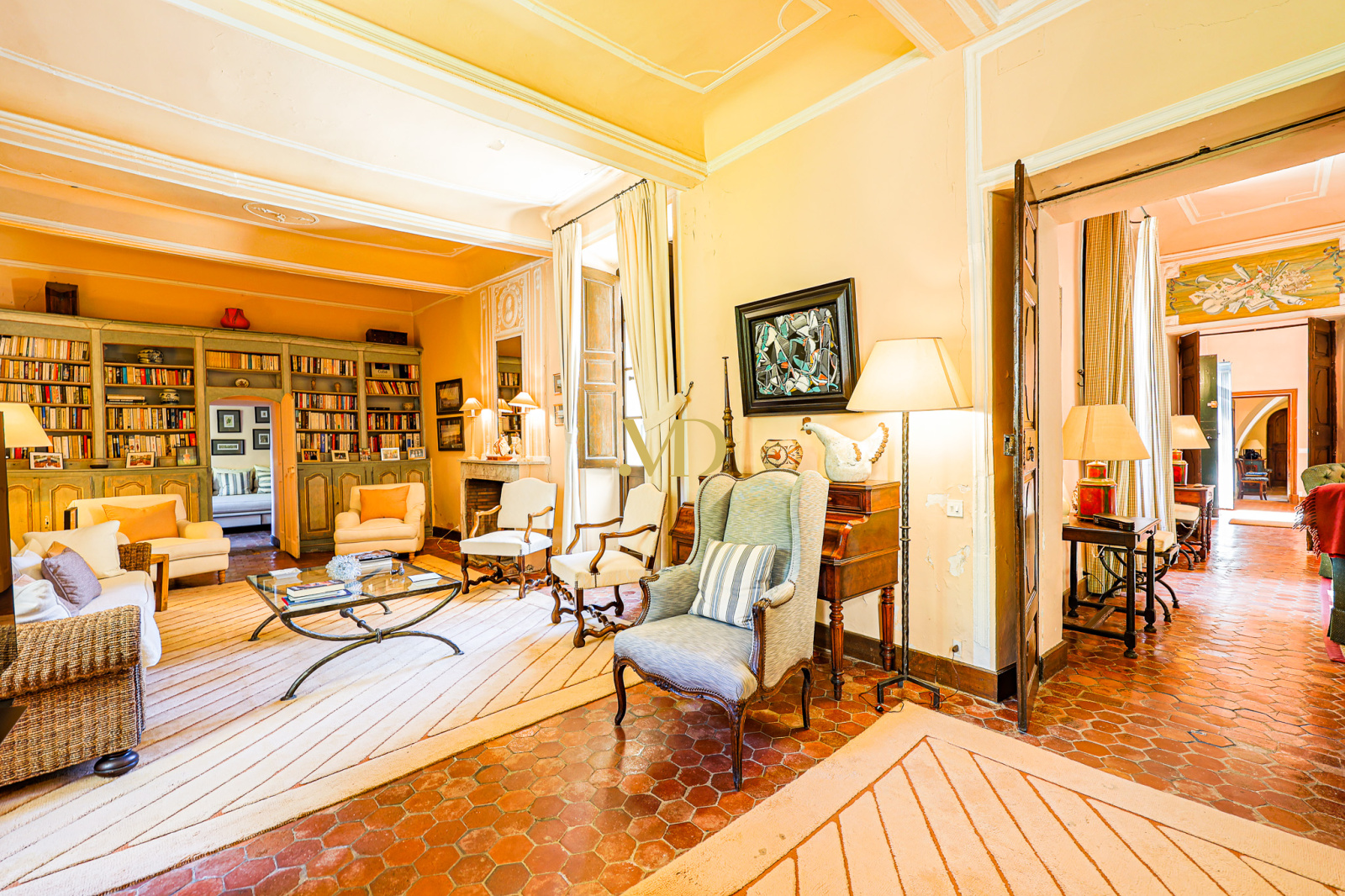 La bastide principale d'une surface de 410m2 offre plusieurs salons , cuisine , salle à manger , buanderie , bibliothèque , et 6 chambres..