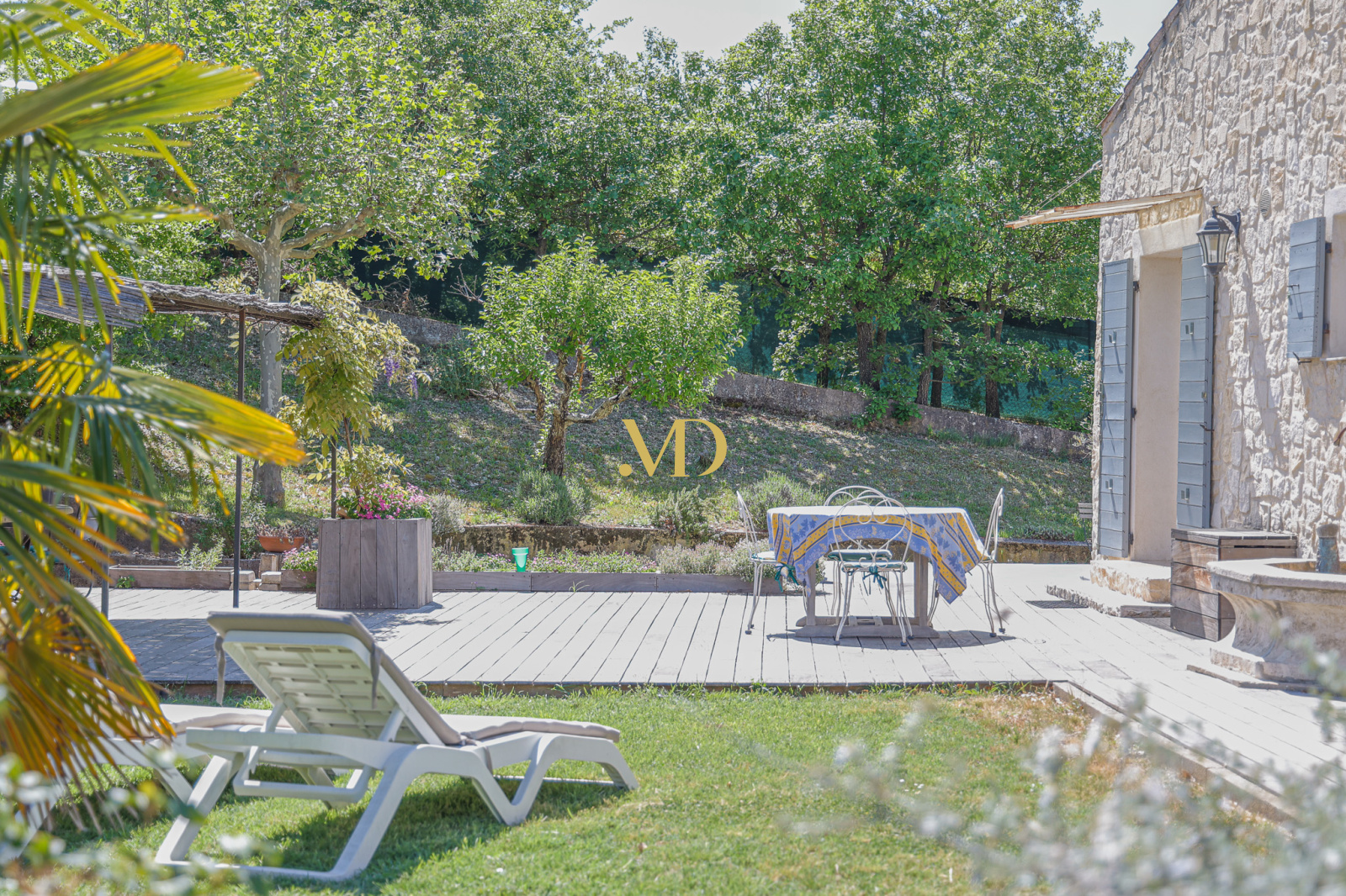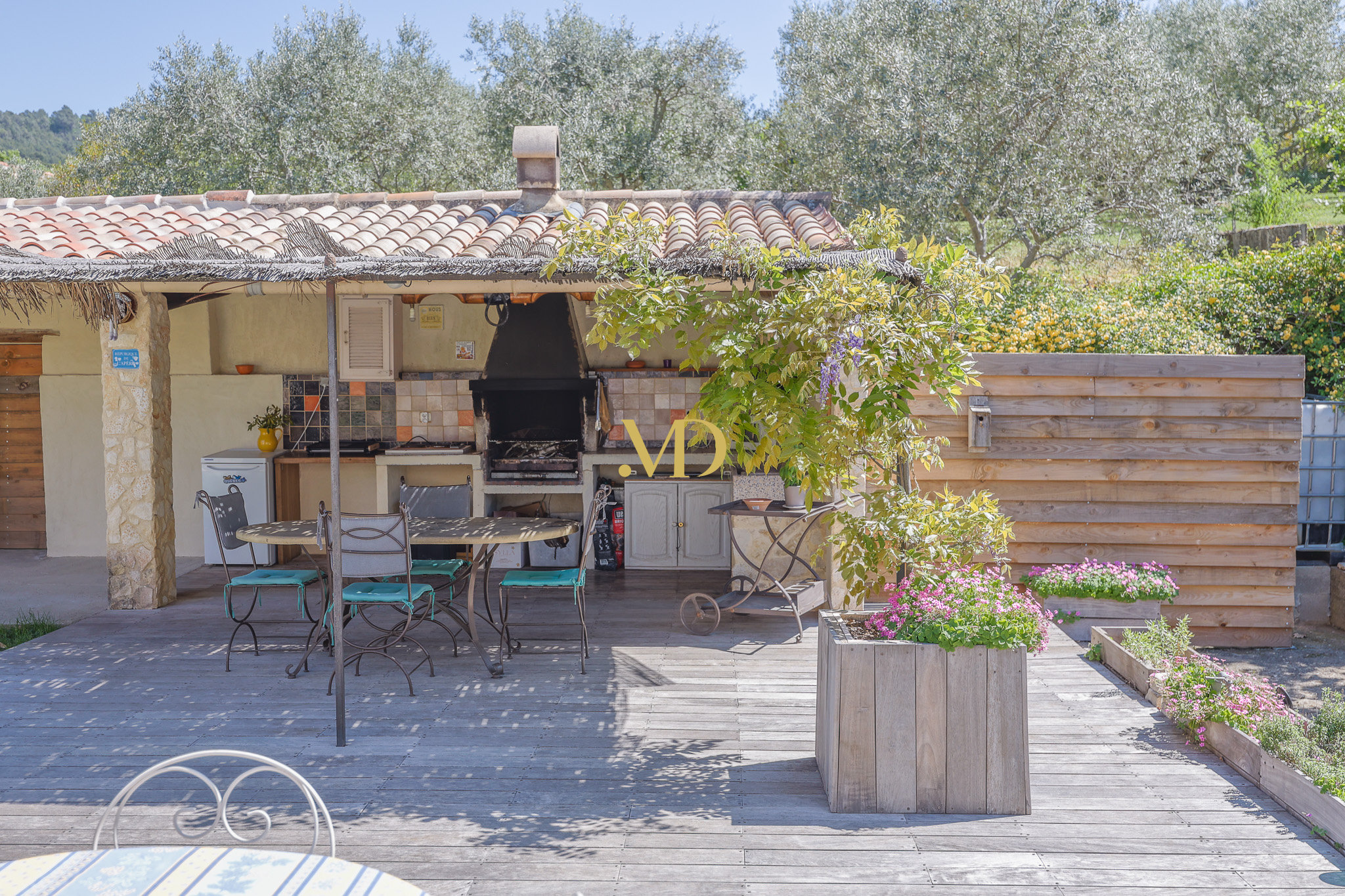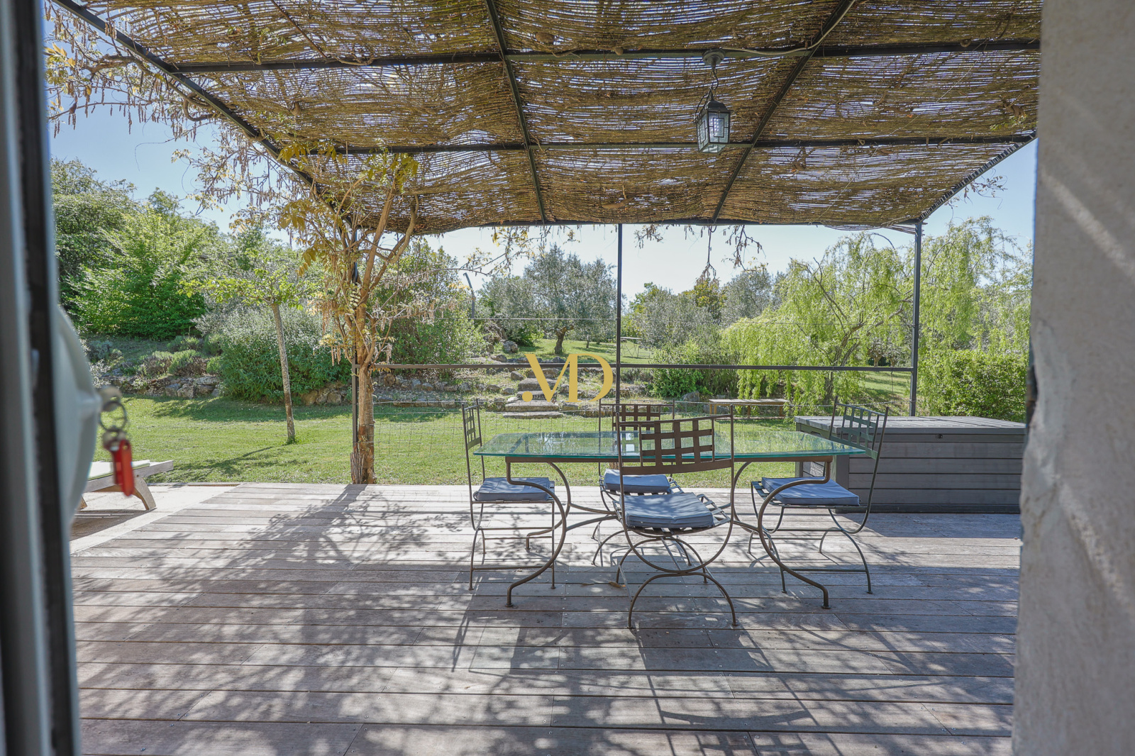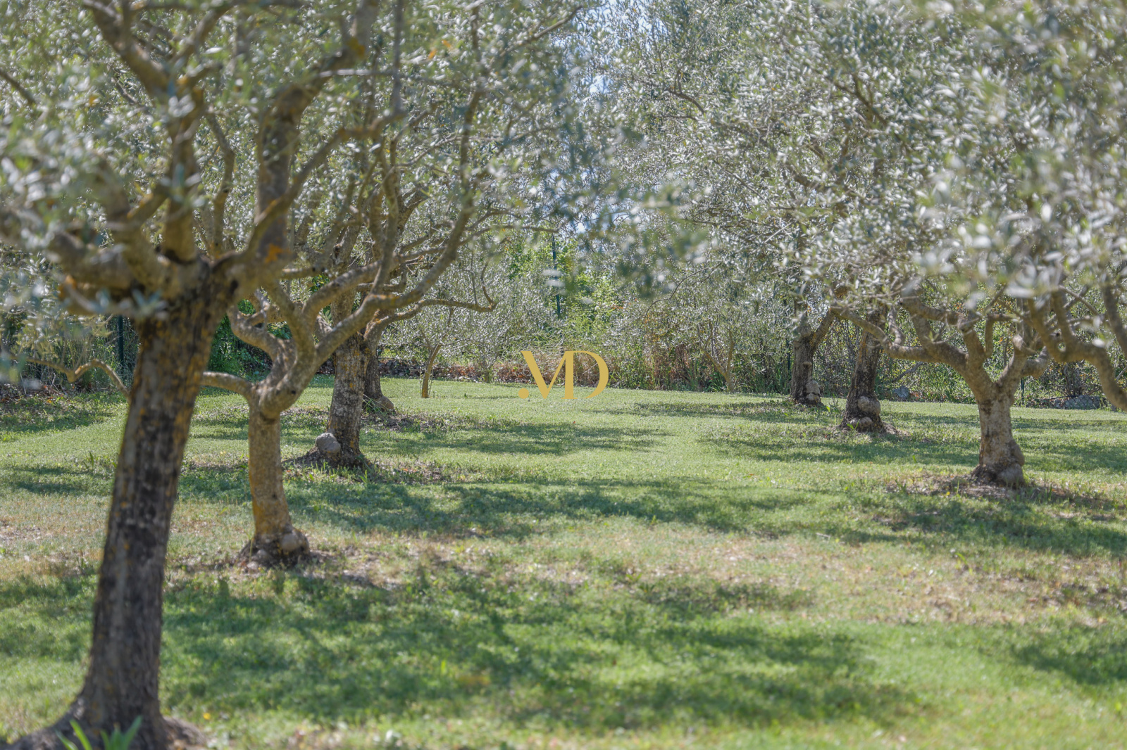 Implantée sur un terrain d’environ 5 200 m² soigneusement paysagé, agrémenté d’une quarantaine d’oliviers, la propriété bénéficie d’une atmosphère intime et authentique. Une piscine de 8 x 4 m bordée d’une élégante terrasse en bois invite à la détente, tandis qu’un puits, une fontaine et différents espaces extérieurs aménagés viennent parfaire ce cadre privilégié.
