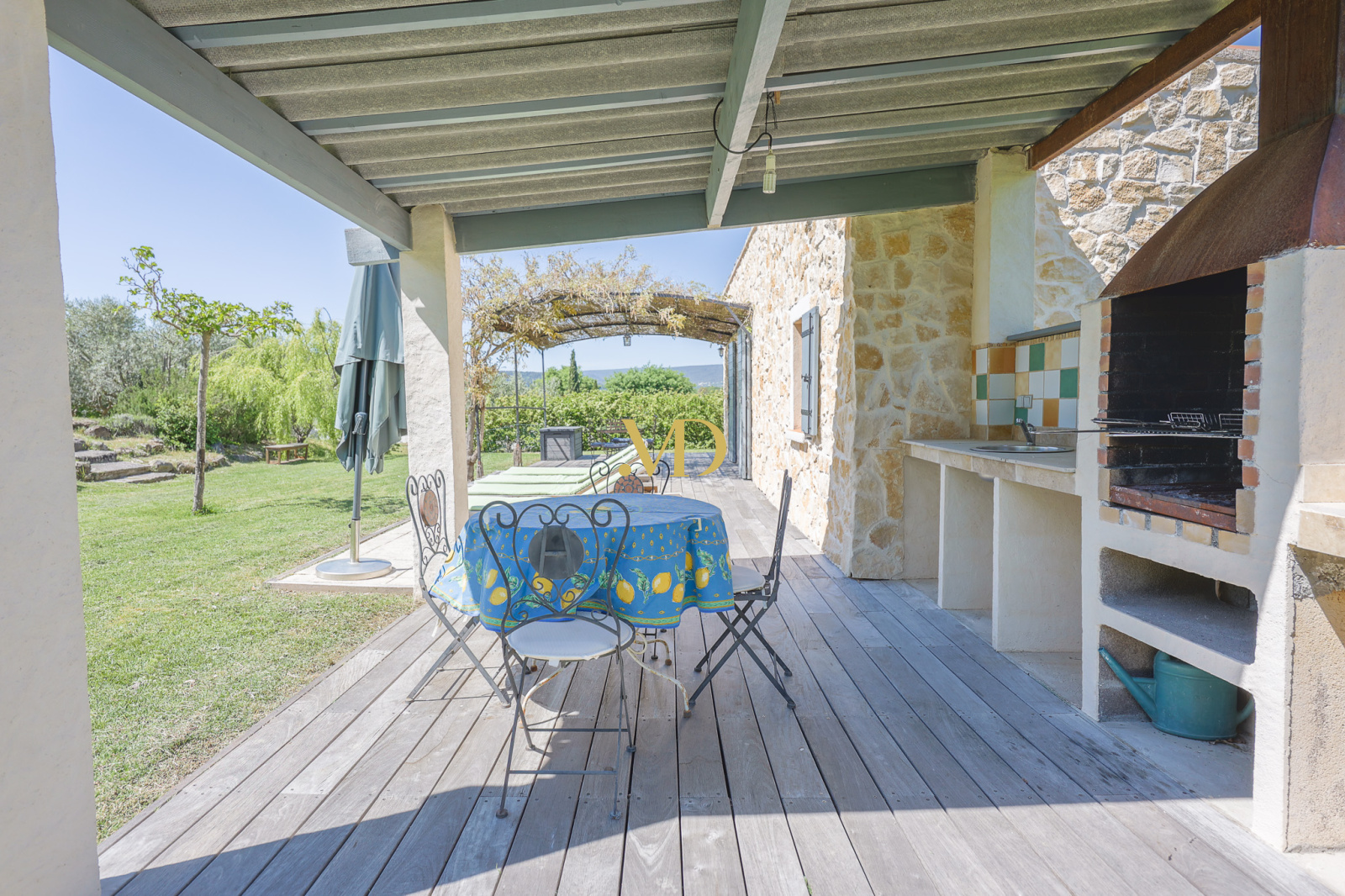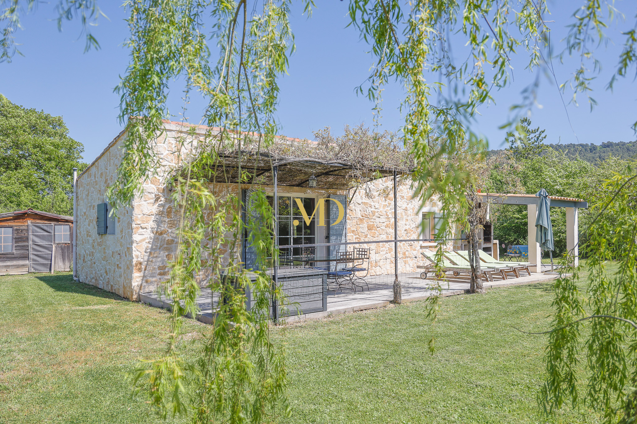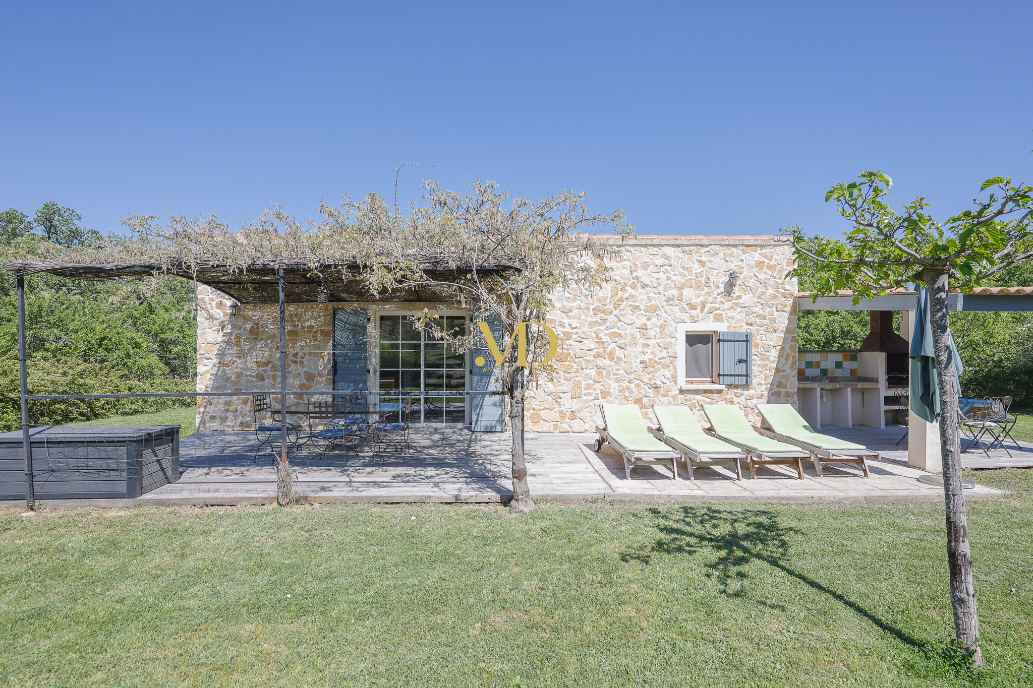 Implantée sur un terrain d’environ 5 200 m² soigneusement paysagé, agrémenté d’une quarantaine d’oliviers, la propriété bénéficie d’une atmosphère intime et authentique. Une piscine de 8 x 4 m bordée d’une élégante terrasse en bois invite à la détente, tandis qu’un puits, une fontaine et différents espaces extérieurs aménagés viennent parfaire ce cadre privilégié.