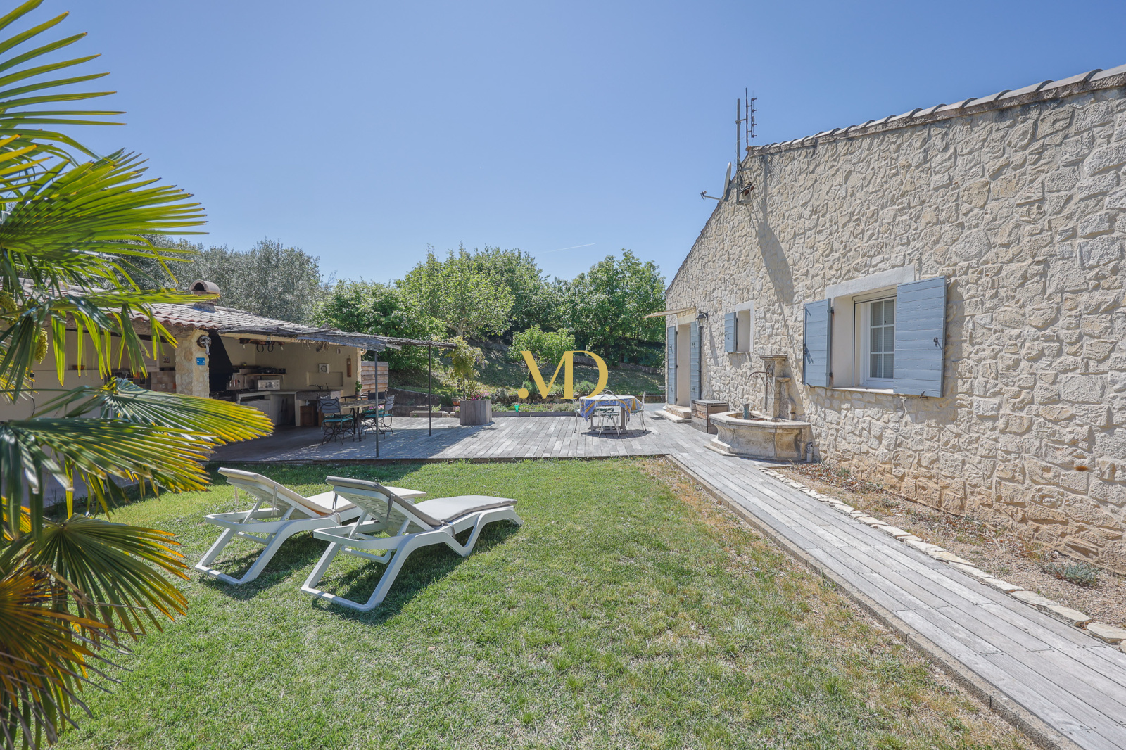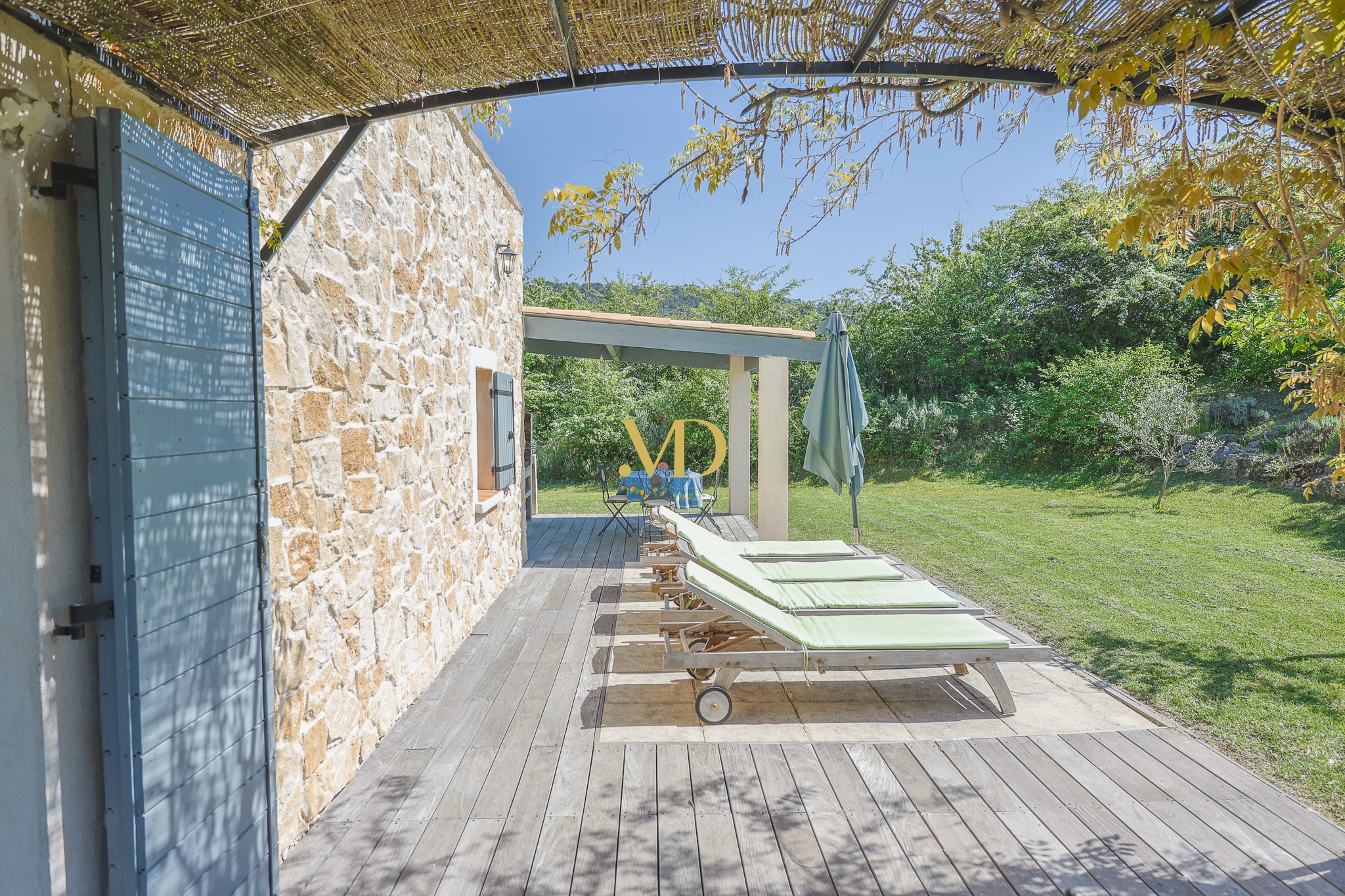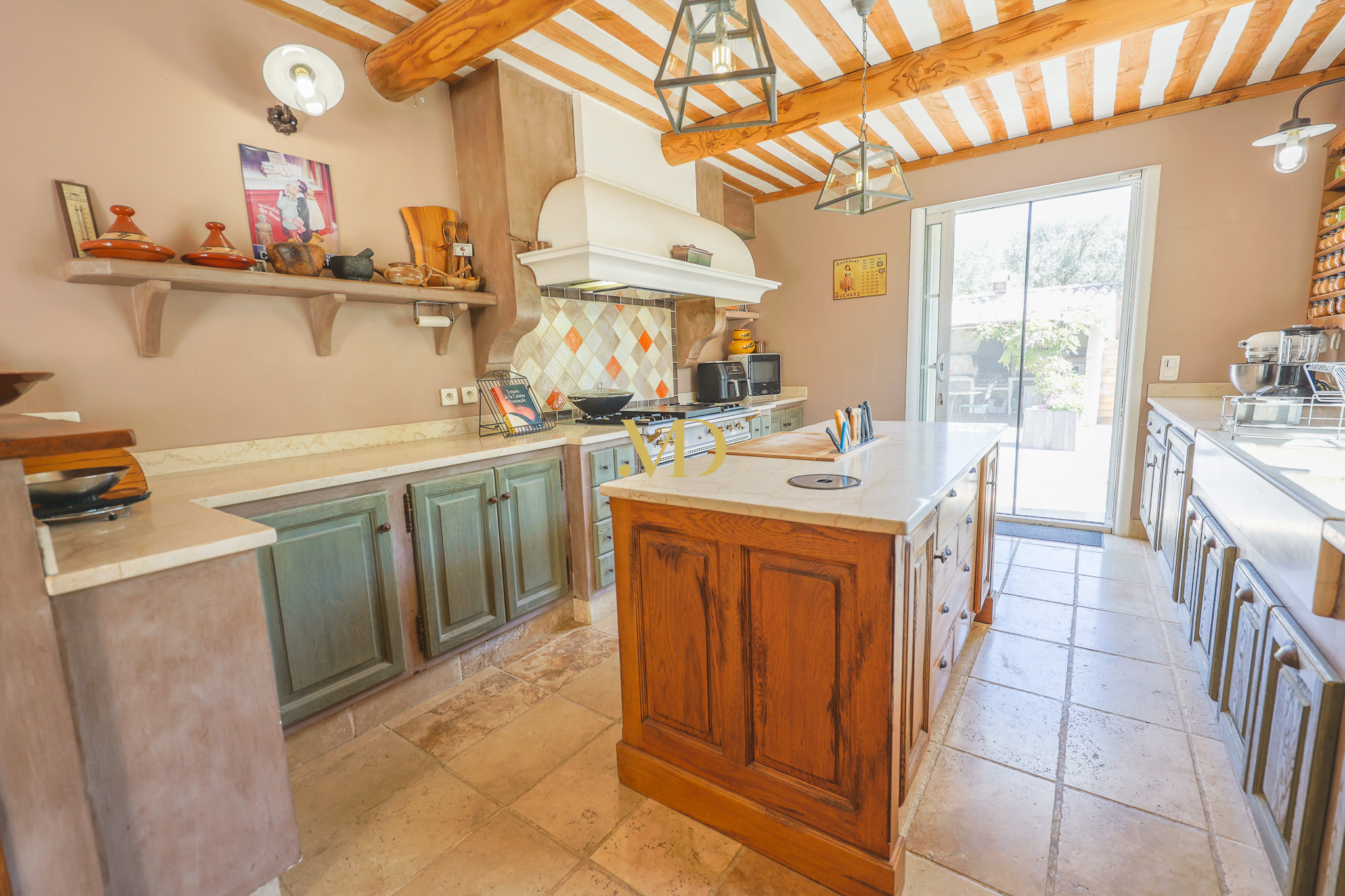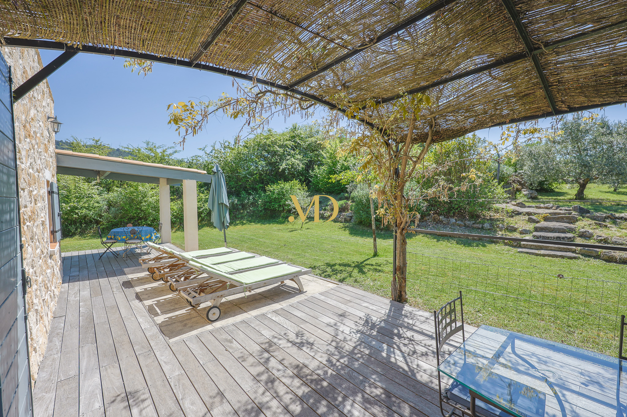 Implantée sur un terrain d’environ 5 200 m² soigneusement paysagé, agrémenté d’une quarantaine d’oliviers, la propriété bénéficie d’une atmosphère intime et authentique. Une piscine de 8 x 4 m bordée d’une élégante terrasse en bois invite à la détente, tandis qu’un puits, une fontaine et différents espaces extérieurs aménagés viennent parfaire ce cadre privilégié.