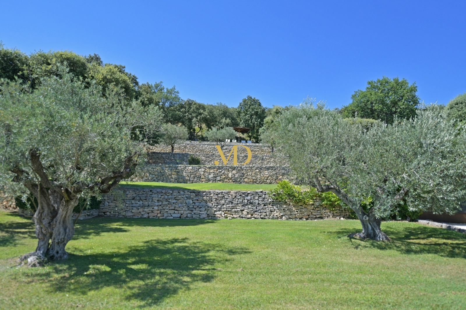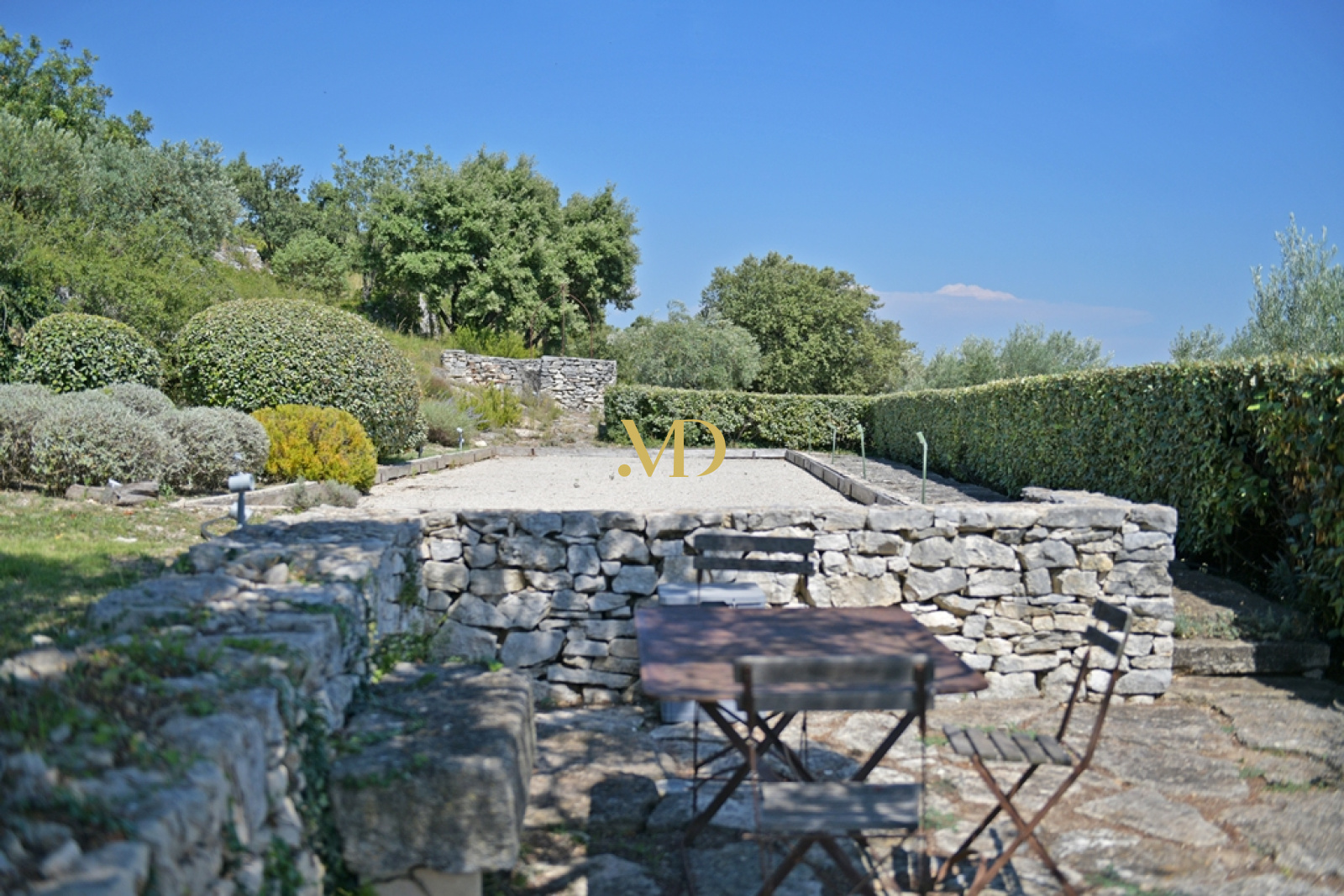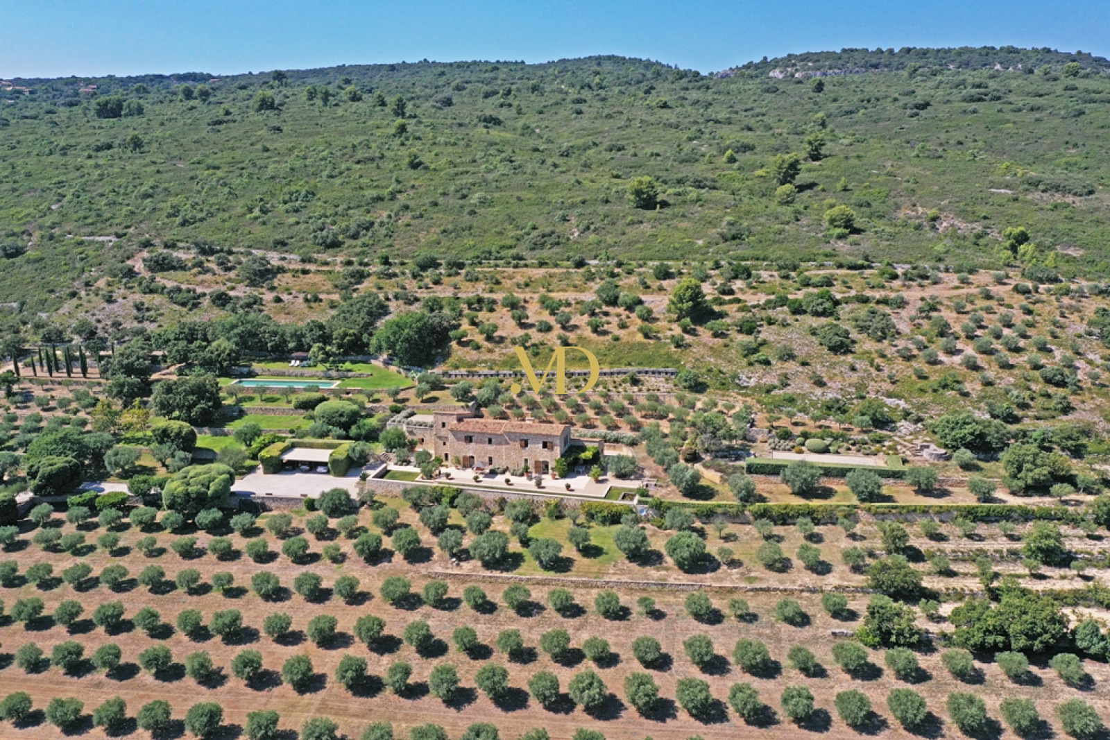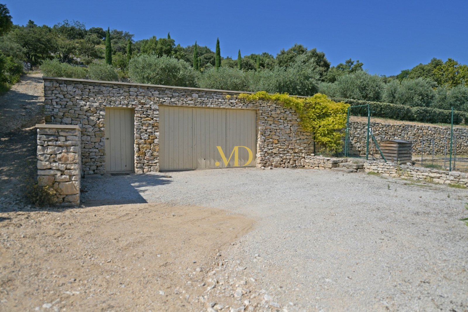 En poursuivant vers l’ouest, on découvre un potager structuré, un grand garage ainsi qu’un atelier et local technique dédiés au jardin. La partie sud du domaine est largement plantée d’oliviers, dont la production récente a atteint plusieurs tonnes. L’ensemble de la propriété est sécurisé par une clôture électrique et bénéficie d’un système d’arrosage automatique alimenté par un forage profond et une cuve enterrée de grande capacité.