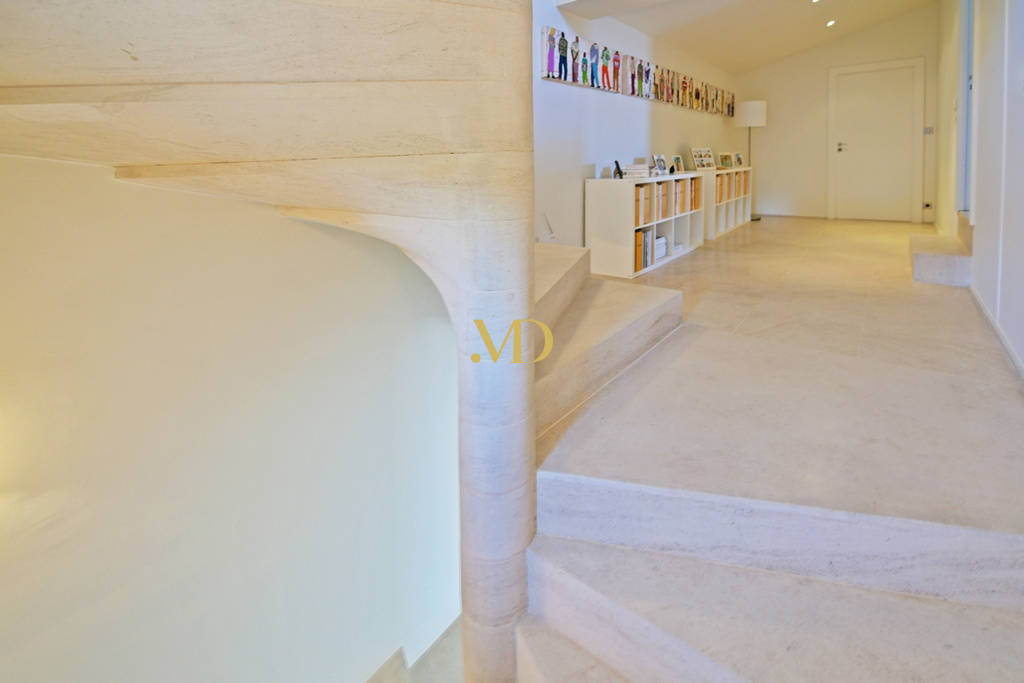 Un élégant escalier en pierre mène à l’étage, où un large palier aménagé en espace lecture dessert deux suites. La première, particulièrement vaste, comprend un espace salon, un bureau, un dressing et une salle de bains complète avec douche, hammam et toilettes séparées. La seconde chambre dispose également de sa propre salle de bains et de toilettes. L’escalier se prolonge jusqu’au dernier niveau, dans la partie pigeonnier, offrant un charmant salon de lecture perché.
