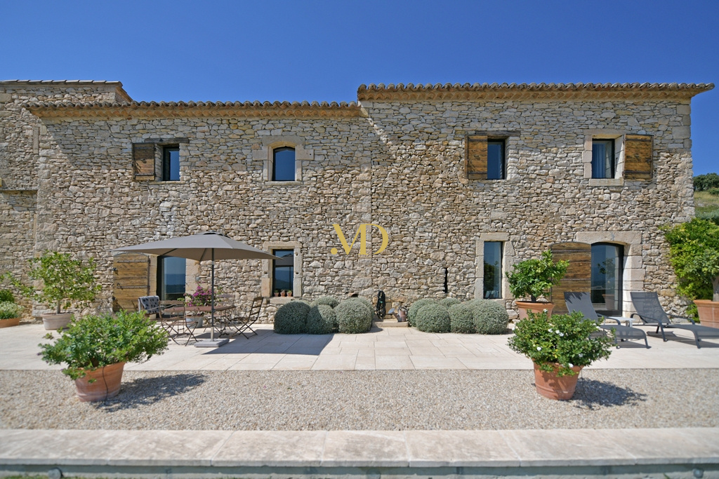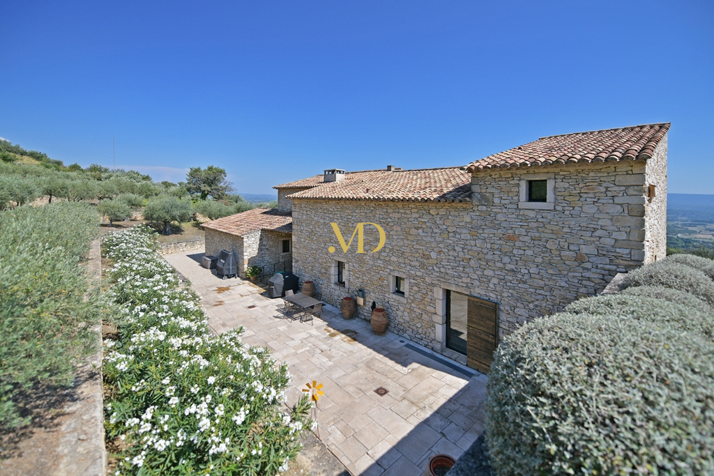 Nichée au cœur d’un environnement naturel spectaculaire, cette ancienne ferme en pierre bénéficie d’un emplacement absolument remarquable, dominant la vallée du Luberon, à 1,2 kms du centre de Gordes. Implantée sur plus de six hectares de terrain, la propriété conjugue authenticité provençale et rénovation contemporaine maîtrisée, dans une atmosphère élégante et résolument actuelle.