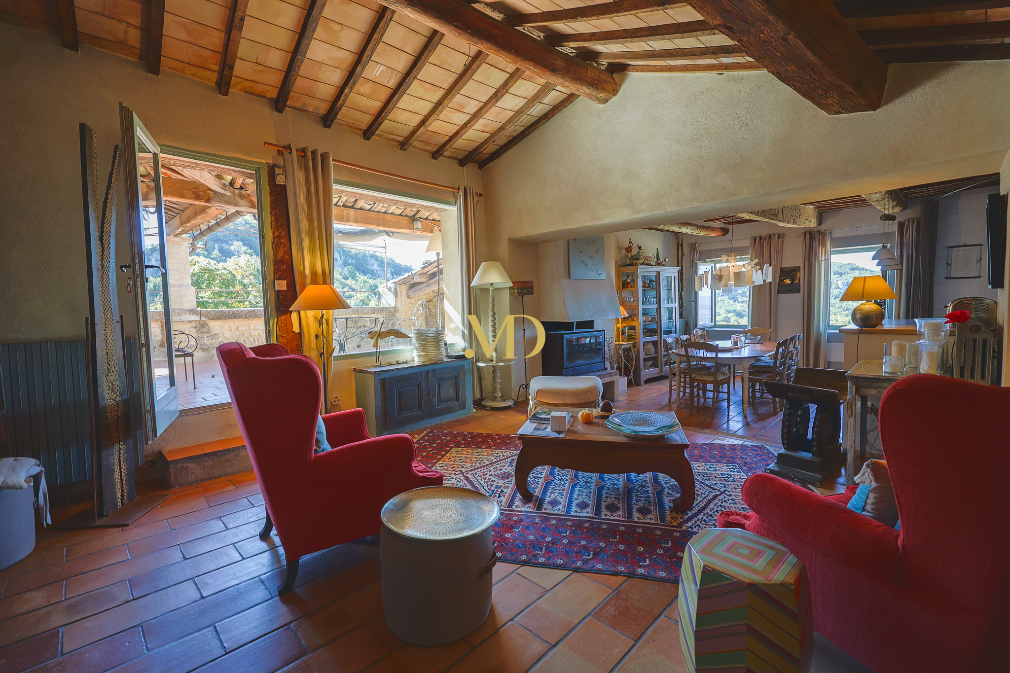 Entièrement rénovée avec soin, la maison a su préserver tout le cachet de l’ancien grâce à des éléments d’époque tels que les tomettes, une cheminée traditionnelle, les plafonds typiques de la région et de belles poutres en bois, créant une atmosphère chaleureuse et élégante.