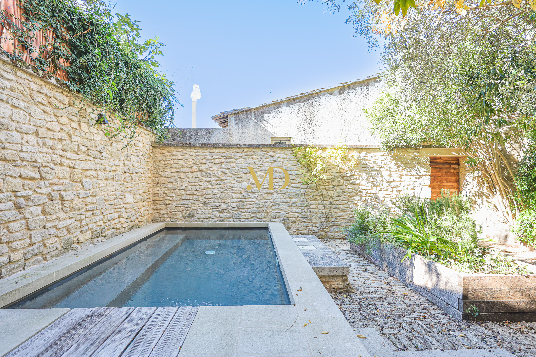 Le jardin, orienté sud-ouest, sans vis-à-vis, et abrite une piscine de 4 mètres par 7 mètres.
